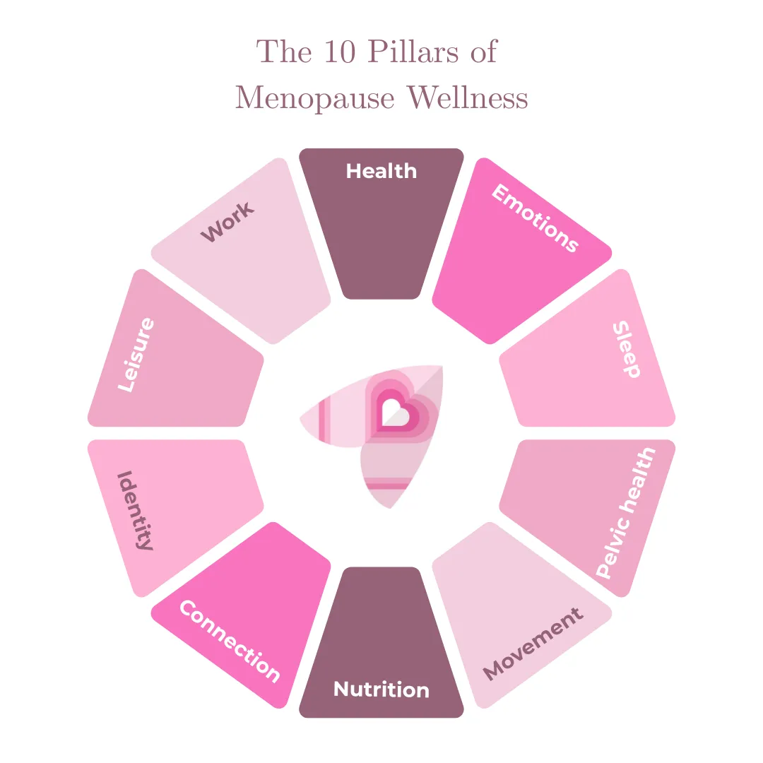 Together, we’ll explore 10 key interconnected pillars of menopause wellbeing, supporting you as a whole person, not just a symptom – helping you to understand what’s happening, taking a personalised approach that works for you.